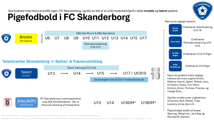 Følg med i vores udvikling af fodbold til piger på på siden eller på FC Skanderborgs Facebook side.